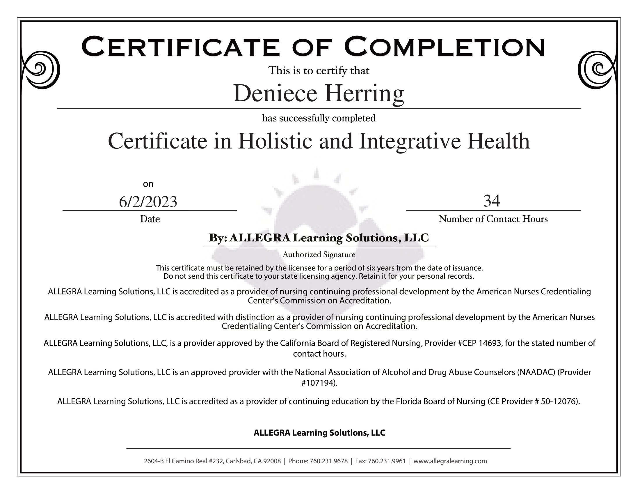 One of Deniece’s significant milestones has been her Reiki I certification, which has served as a catalyst for her growth as a holistic health entrepreneur. This achievement has allowed her to connect with clients on a profound level, helping them tap into their inner sources of healing and empowerment.